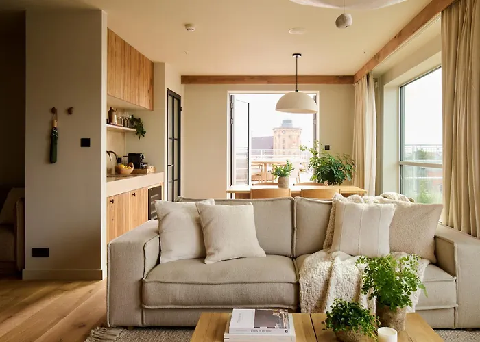 - Some rooms with a nice balcony, a TV and a sofa.
