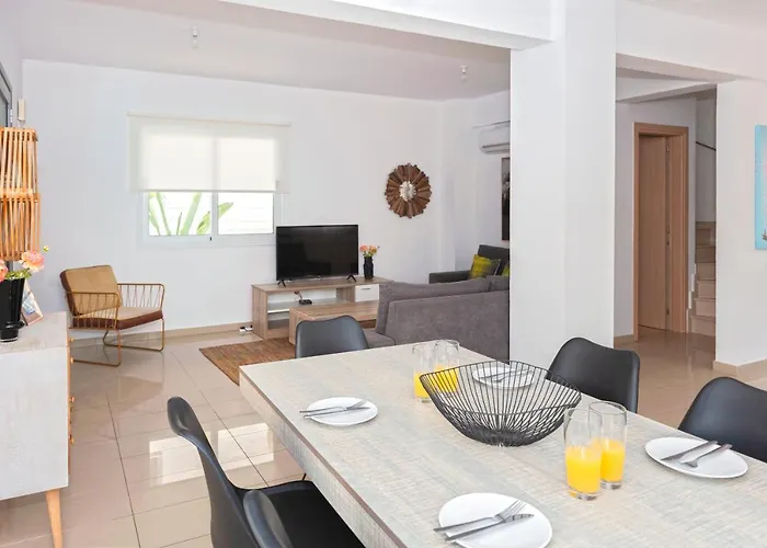 Located 17 minutes on foot from the well-known Nissi Beach, Modern 3 Bedroom Villa Near Nissi Beach! boasts a swimming pool with a Jacuzzi. Featuring a patio, the accommodation is situated 25 minutes' stroll from Plateia Seferi.